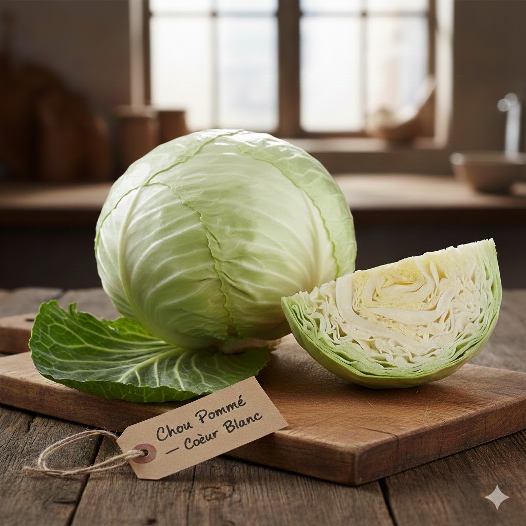 Ce chou pommé est sélectionné pour sa densité. Il supporte parfaitement les cuissons longues dans le bouillon du Thieb sans s’écraser. Riche en fibres et très nutritif.
